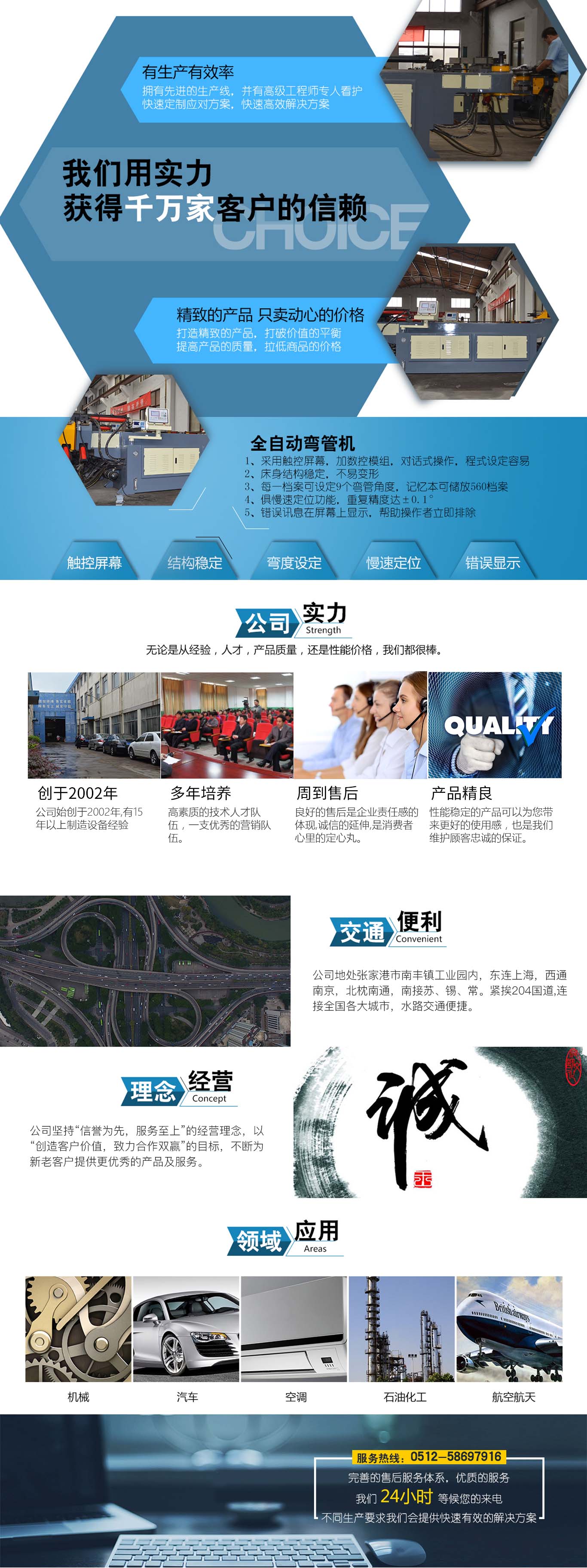 張家港市雙和機(jī)械制造有限公司始建于2001年,占地面積12000平方米,南鄰蘇州、無錫、上海,東鄰常州、南京,交通便利,位長(zhǎng)三角中間地段,風(fēng)景優(yōu)美的張家港。 雙和公司至創(chuàng)立開始,引進(jìn)了國外的設(shè)計(jì)制造理念,組建了企業(yè)生產(chǎn)管理優(yōu)秀團(tuán)隊(duì),致力于管材加工機(jī)械研發(fā)、設(shè)計(jì)、制造。創(chuàng)新的設(shè)計(jì)理念,嚴(yán)格的質(zhì)量把關(guān),專業(yè)的售后服務(wù),不斷提升了我在整個(gè)行業(yè)的影響力。 雙和公司生產(chǎn)的系列產(chǎn)品分為彎管機(jī)、切管機(jī)、縮管機(jī)、磨齒機(jī)、伺服彎管機(jī)、數(shù)控彎管機(jī)、液壓彎管機(jī)、自動(dòng)切管機(jī)、管端成型機(jī)、倒角機(jī)、大弧滾圓機(jī)、鋁切機(jī)、壓彎機(jī)等管材加工機(jī)械,廣泛用于航天業(yè)、造船業(yè)、汽車制造、鍋爐制造、自行車、摩托車、體育健身器材、管制品家...